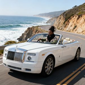 “Make a photo of the man driving the car down the California coastline”