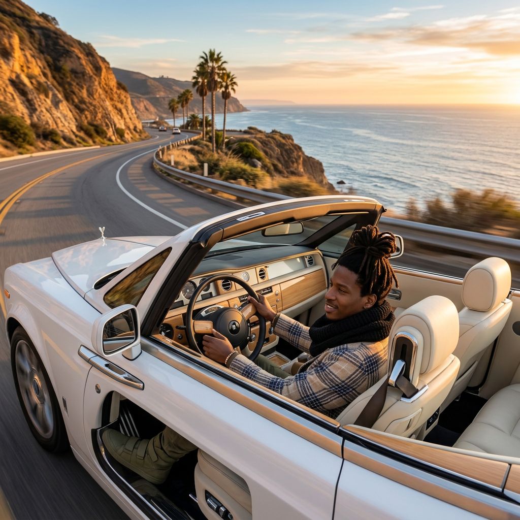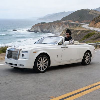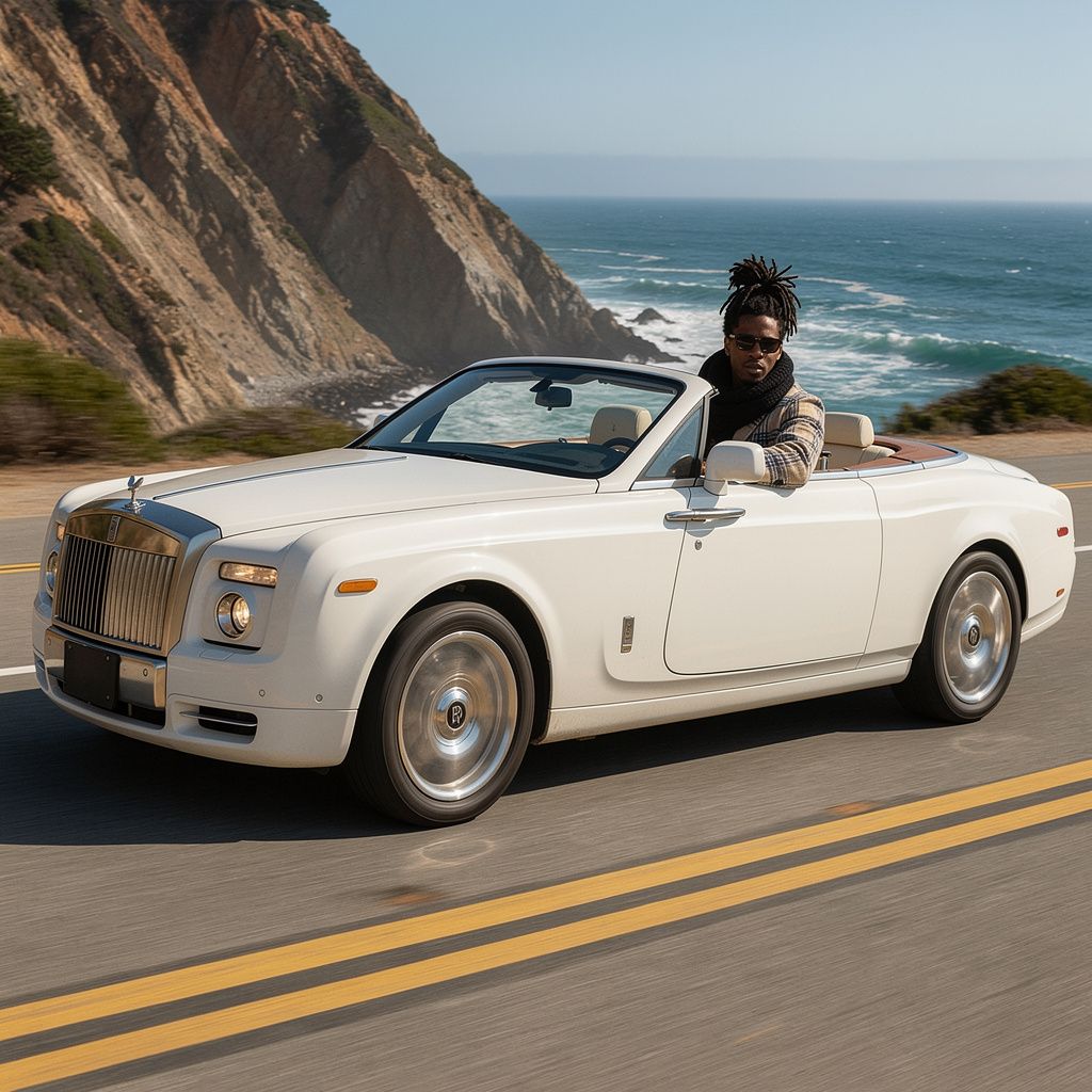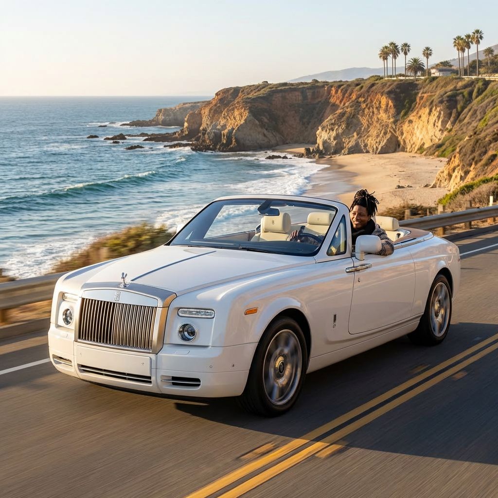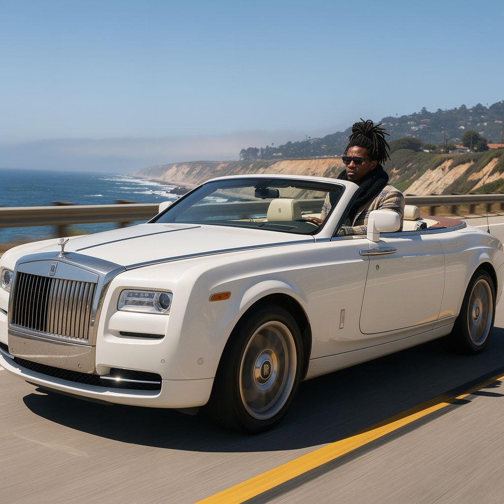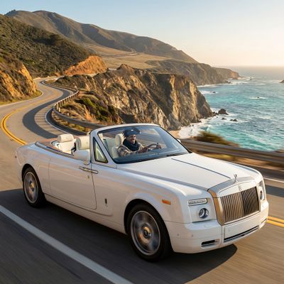 “Make a photo of the man driving the car down the California coastline”
