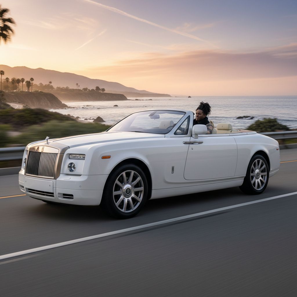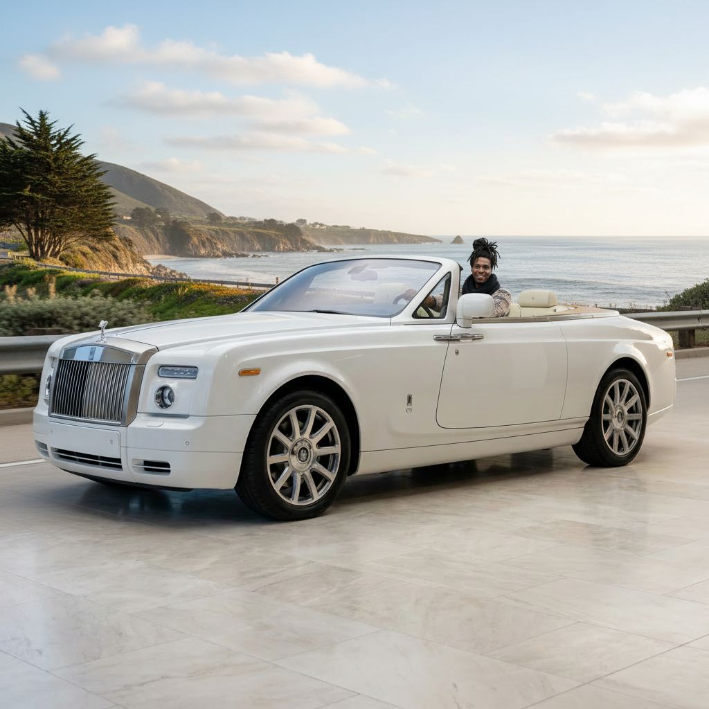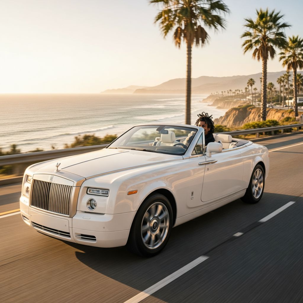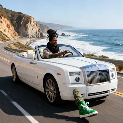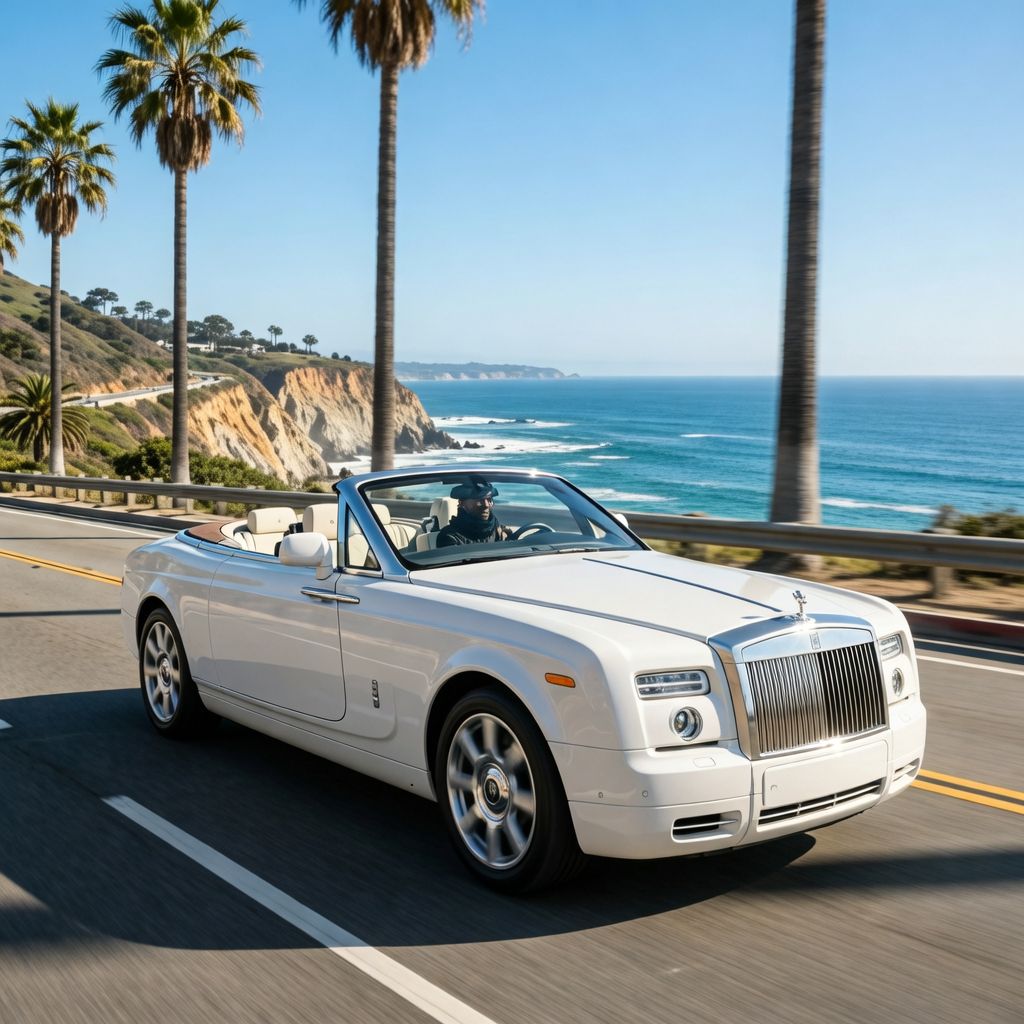 “Make a photo of the man driving the car down the California coastline”