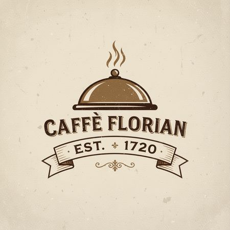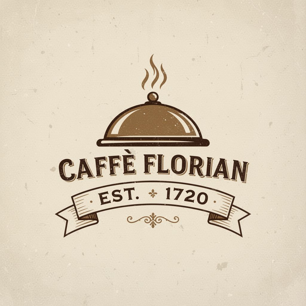 Text-to-Image“Vintage minimalist restaurant logo for "Caffè Florian", retro cloche dome with steam and "Est. 1720" banner, classic typography, warm brown and cream tones, subtle texture on light background, vector emblem style.”