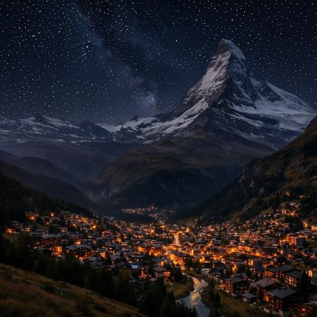 Editing“Change the scene to night: a deep, dark sky with subtle, glistening stars visible behind the mountain.”