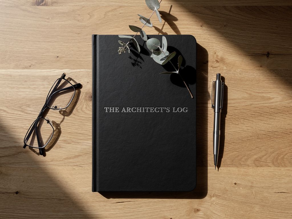 A hyper-realistic close-up of a weathered leather traveler’s journal laying o...