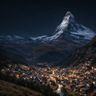 “Change the scene to night: a deep, dark sky with subtle, glistening stars visible behind the mountain.”