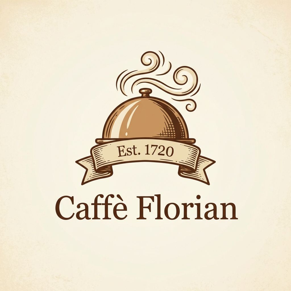 Vintage minimalist restaurant logo for "Caffè Florian", retro cloche dome wit...