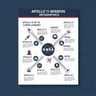 Text-to-Image“Create a clean, modern vector infographic poster about the Apollo 11 mission. NASA-inspired palette (navy, white, muted red, light gray). Flat-vector style, crisp lines, consistent iconography, subtle gradients only. Steps (stop at landing): 1. Launch (Saturn Vicon) 2. Earth Orbit (Earth + orbit ring icon) 3. Translunar (trajectory arc icon) 4. Lunar Orbit (Moon + orbit ring icon) 5. Descent (lunar module descending icon) 6. Landing (lunar module on the surface icon) Small supporting elements (minimal text): • Crew strip: three silhouette icons with only last names: Armstrong, Aldrin, Collins. • Landing site marker: Moon pin labeled "Tranquility" only. Layout constraints: generous margins, large readable labels, clean background with subtle stars. Vector-only, print-poster look, high resolution.”