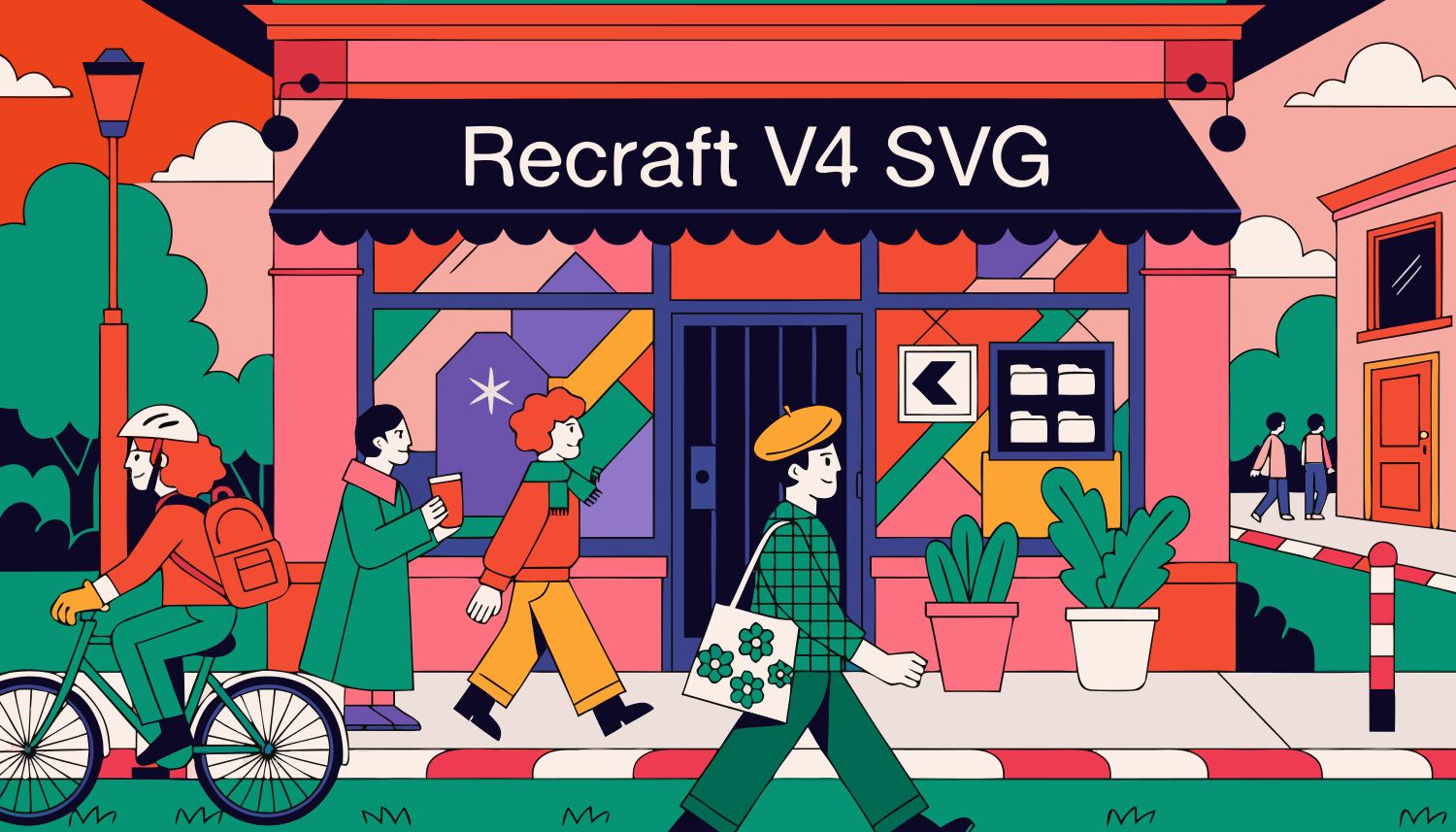 A view of a storefront with the store name "Recraft V4 SVG". The composition ...