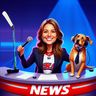 Image Editing“Create a caricature of me and my job. Make it exaggerated and humorous, incorporating my profession as a tv show anchor and my love for dogs and hockey.”