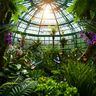 Text-to-Image“Hyper-photorealistic interior of a lush Victorian glass greenhouse filled with exotic tropical plants, vibrant blooming orchids, tall ferns, colorful butterflies in flight, sunlight filtering through ornate glass roof creating realistic caustics and dew on leaves, intricate iron framework visible, misty atmosphere, 8K masterpiece.”