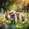 Text-to-Image“Hyper-photorealistic scene of fluffy baby animals—a golden retriever puppy, tabby kitten, baby bunny, and red fox kit—with big expressive eyes and ultra-detailed soft fur, playfully chasing butterflies and tumbling together in a lush wildflower meadow, warm golden sunrise light with god rays and dew sparkles, joyful wholesome vibe, 8K masterpiece.”